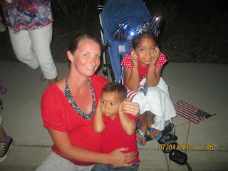 In the evening, we walked to Santana park to see the fireworks. We had great seats and were not expecting them to be so close. It was too loud for Carter and he did not like it. Afterwards, Carter fell asleep walking back to the car.